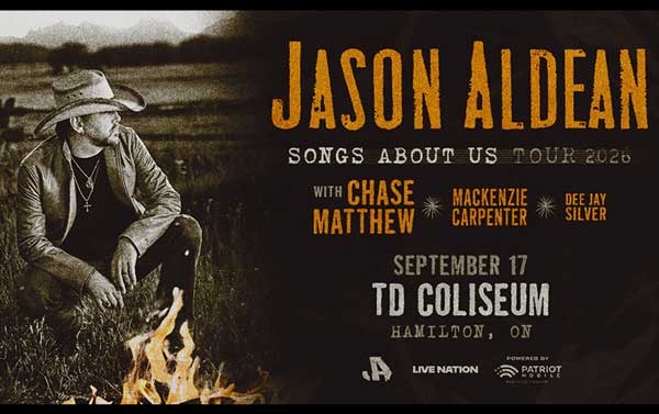 Jason Aldean: Songs About Us Tour 2026 TD ColiseumSeptember 17th, 20267:30pm KX Country welcomes Jason Aldean’s Songs About Us Tour with Chase Matthew, Mackenzie Carpenter, and Dee Jay Silver to TD Coliseum on September 17th Previous article: Keith Urban live at OLG Stage! Prev Next article: Ninety9 Entertainment presents Bailey Zimmerman Next